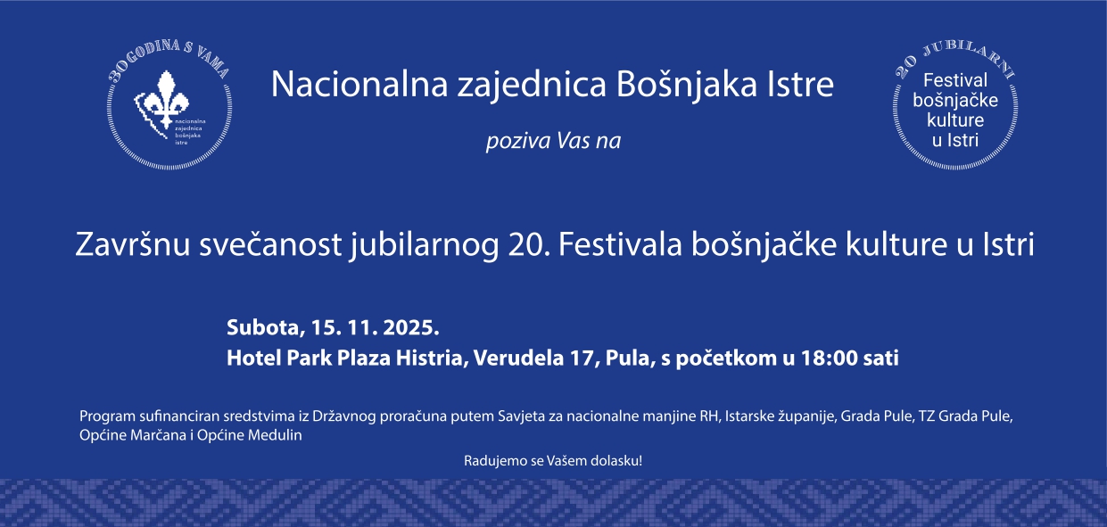 Najava događaja: Završna svečanost jubilarnog 20. Festivala bošnjačke kulture u Istri
